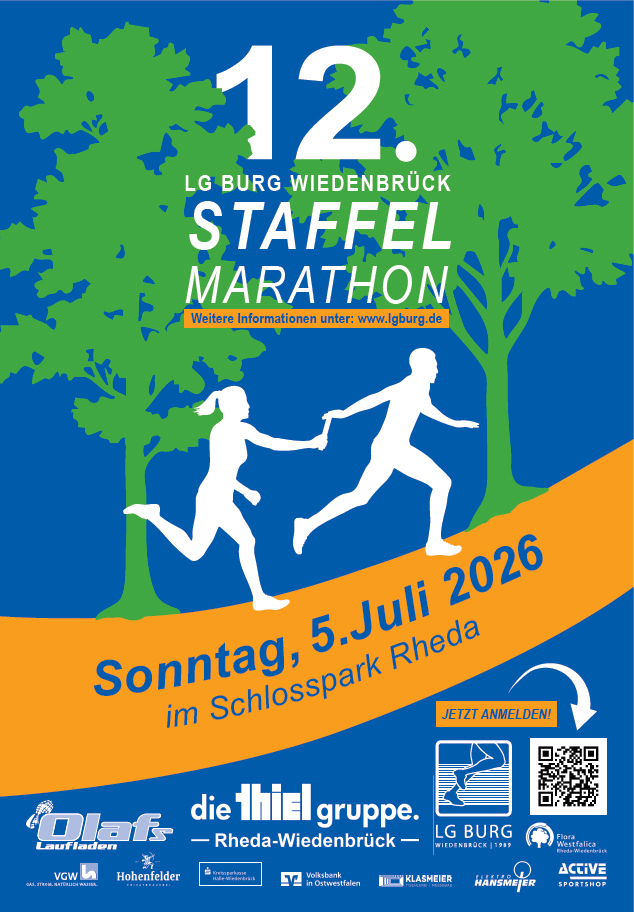 Der 12. Staffelmarathon der LG Burg Wiedenbrück findet am 5. Juli 2026 statt.