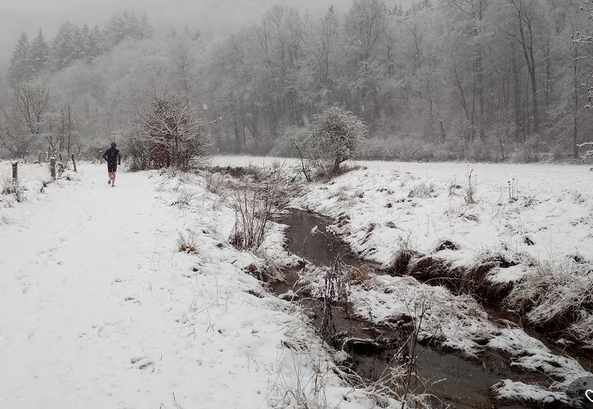 Das zweite Mal im Winter hatten wir Eis und Schnee. An dem Wochenende vor den Schneemassen, die uns hier heimgesucht haben, sind wir auf dem Weg gelaufen. Dieses Mal gegen den Uhrzeigersinn so dass wir diesen Aspekt auch bewerten können. 3,5 Stunden Laufen oder rutschen, Gregor mit kurzer Hose und ich mit einer kaputten Laufjacke. Aber es hat Spaß gemacht.