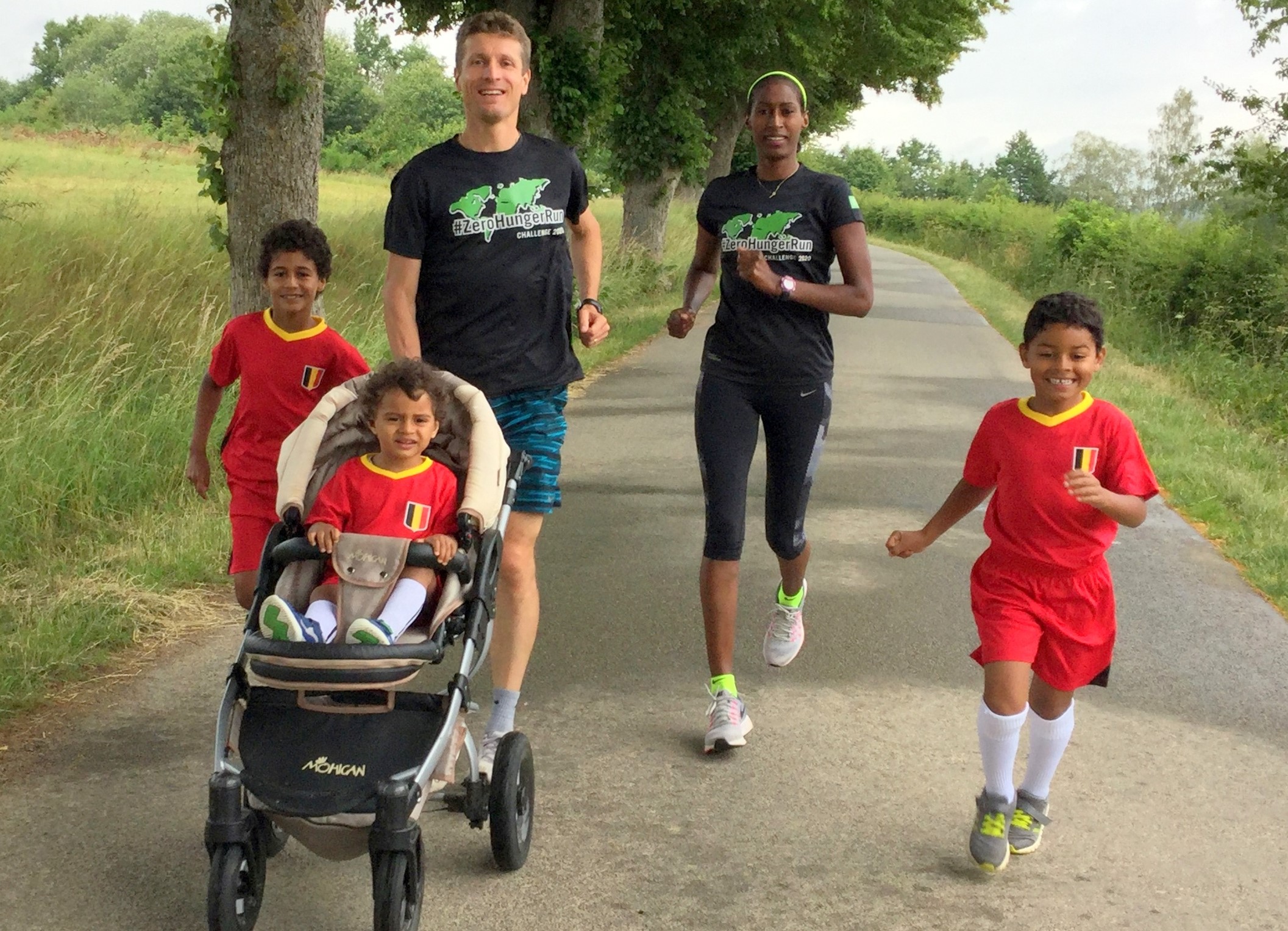 Foto: auch Botschafter-Familie Königs aus dem deutschsprachigen Belgien ist dabei. Roger ist als erfolgreicher Straßenläufer oft in Deutschland unterwegs, die gebürtige Äthiopierin Ferahiwat Gamachu vielfache belgische Meisterin über 10000 Meter.