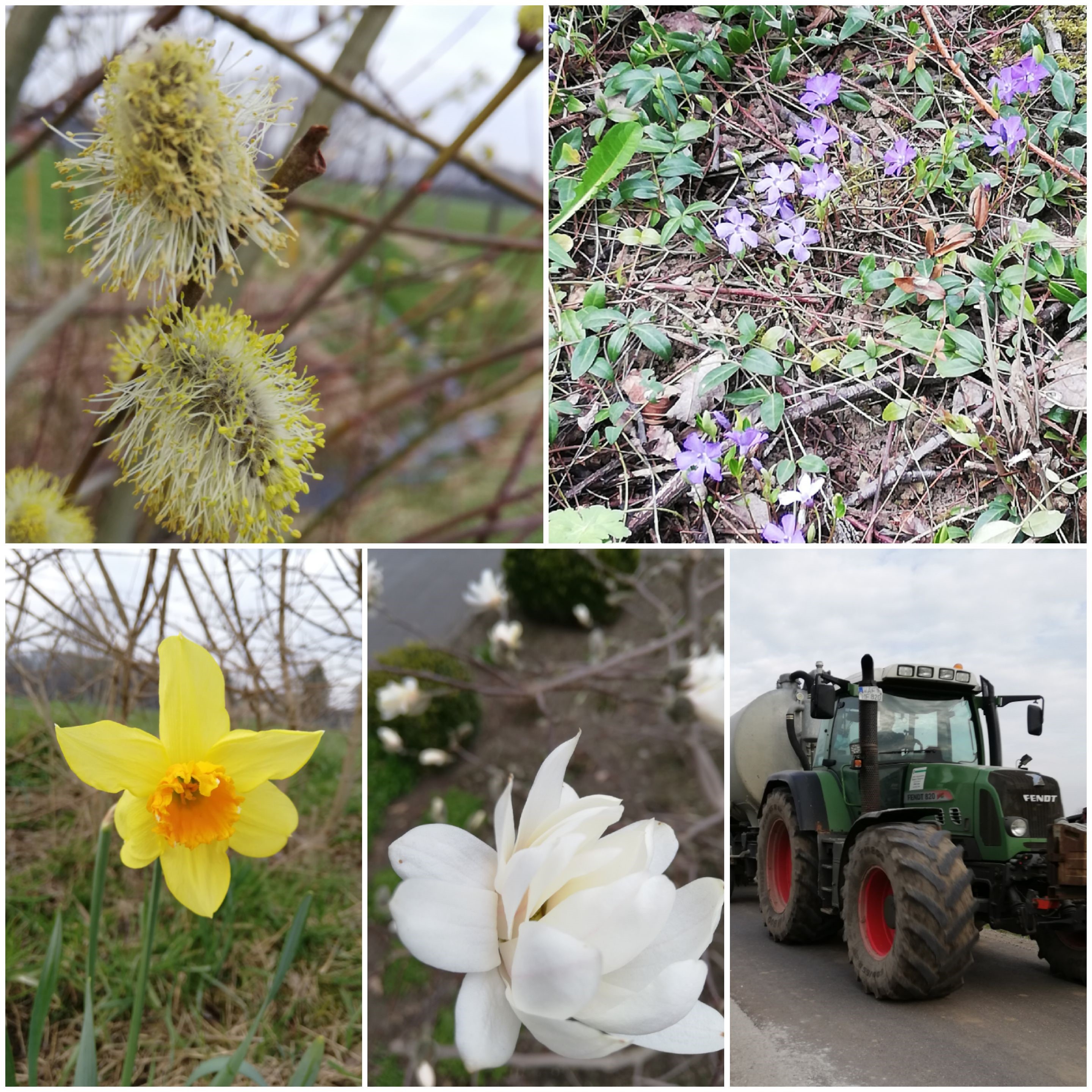 Frühling mit Traktor: Hallo liebe Sportler, auch wir haben die 4. Herausforderung angenommen und haben uns auf den Weg nach Langenberg gemacht. Dieses Mal sind wir nicht gelaufen, sondern mit dem Fahrrad gefahren. Auf der Langenberger Volkslaufstrecke haben wir dann ein paar Fotos gemacht. Frühlingsblüher sind natürlich auch dabei, aber auch Traktoren gehören in diesen Tagen zum Straßenbild des Frühlings.