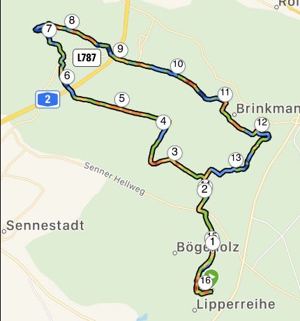 Heute war es eine meiner Lieblingsrunden ( 3 Wälder in Lintel) über ca 12,5 km , ohne Musik, aber auch schön! Liebe Grüße Berna