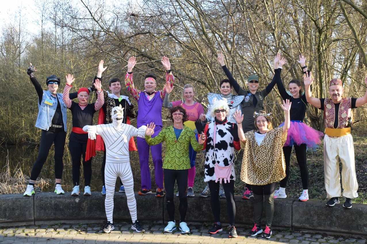 Die Teilnehmer des Karnevals-Laufes am Samstag sorgten auf ihrem Weg durch Rheda-Wiedenbrück für so manches Lachen und fröhliche Gesichter. Bunt kostümiert ging es vom Stadion Burgweg einmal durch die Flora-Westfalica und zurück.