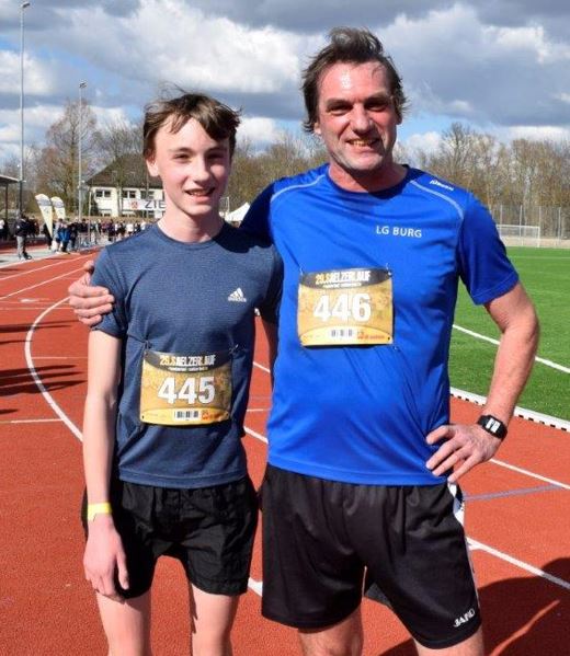 Im 5 Km-Lauf gab es wieder einen Vater-Sohn Einsatz, hier lief Till Feldmeier gegen starke Paderborner Läufer auf Platz 3in der Klasse U16.