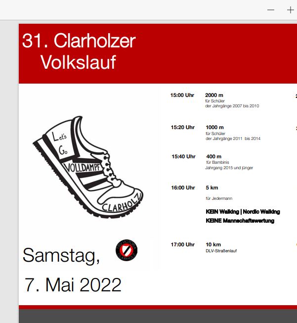Endlich wieder - wir freuen uns riesig auch den Clarholzer Volkslauf dieses Jahr am 07- Mai wieder live erleben zu können, denn auch bei der LG Volldampf Clarholz läuft es wieder im Frühjahr 2022: