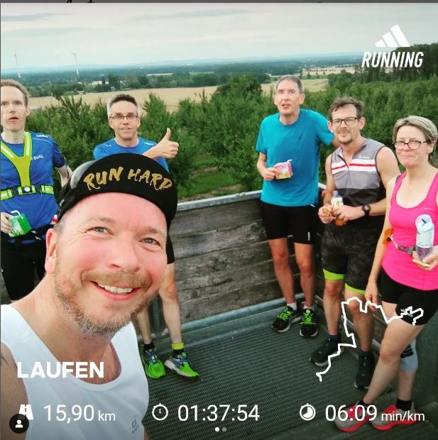 Der Nachbar @alexkrausse hat gefragt ob ich Lust hätte auf den #sommersonnenwendelauf ..... Antwort "Na klar" 😅 also ging es mit einer kleinen aber feinen Gruppe der @lgburg_wiedenbrueck um 20:15 los Richtung #stromberg quer durch den #hambusch an Alpakas vorbei über Wiesen und Felder die letzten 2 km 100HM ⛰️ und an einem Polterabend vorbei 🥳 swipe ➡️ Pic 2...wir wurden mit einer großartigen Aussicht um 21:50 belohnt 😍 und guter Verpflegung! Danke Alex!!!