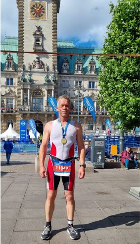 Axel Runschke zog es zum TRIATHLON HAMBURG. Dort wurde die Stadt wieder zur Triathlon-Arena – Schwimmen in der Binnenalster sowie ein Rad- und Laufkurs durch die City und am Hafenrand. Axel war dabei top: 1,5 Km Schwimmen, ca. 40 Km auf dem Rad und ein 10 Km- Lauf zum Abschluss. Finish in 2:50 Stunden ,
