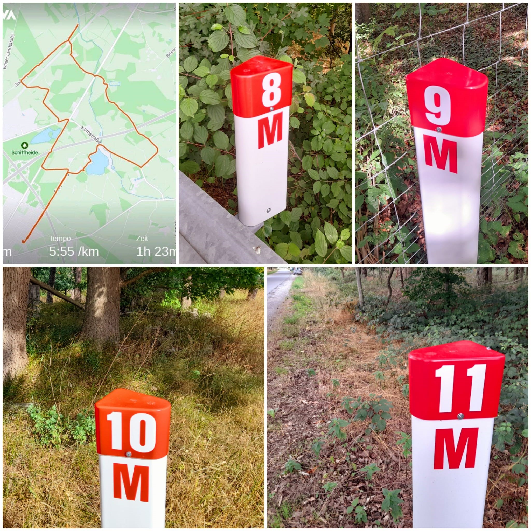 Hey, heute haben wir den Sonntagslauf über ein Teilstück der neuen Marathonstrecke rund um Rheda-Wiedenbrück abgelaufen. Jeder km ist gut markiert (s. Foto), aber man muss schon gut hinschauen, um keinen zu verpassen. Wir haben z.B. km 8 nicht wahrgenommen. Wer aber Lust hat mal aufmerksam die Strecke kennenzulernen, hat dabei nun die Chance auch an unserem Gewinnspiel dazu teilzunehmen.