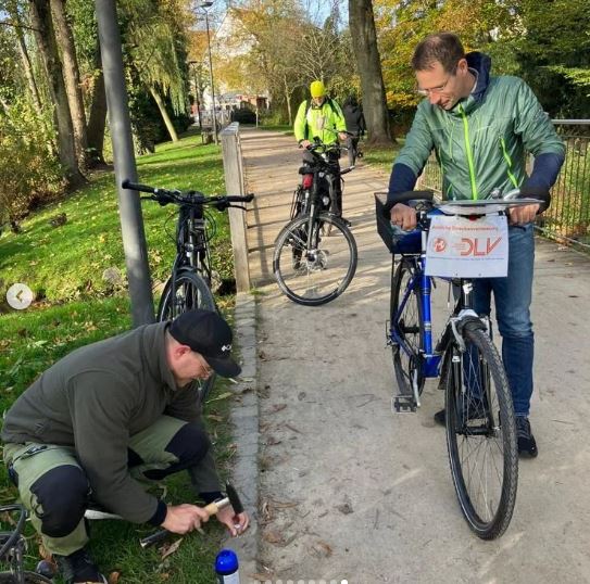 Wer am Samstag in der Rietberger Innenstadt unterwegs war, hat vielleicht eine Gruppe motivierter Menschen mit Fahrrädern, blauer Farbe und einem Hammer gesehen 😉 Dabei wurde die Strecke für den Adventslauf am 10. Dezember 2022 nach DLV-Richtlinien vermessen.