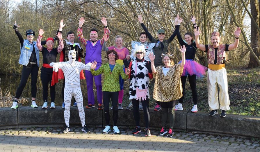Buntes Treiben im Karneval?, Natürlich auch be der LG Burg! Daher laden wir euch ein zur Wiederholung unseres Karneval-Laufes; siehe Bild aus dem Vorjahr: