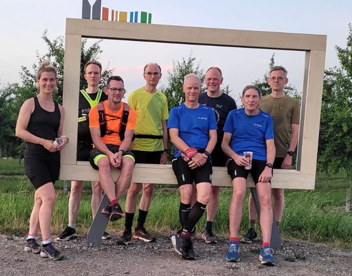 (Bericht von R.Beckers): Trotz des unabänderlichen Abschieds vom längsten Tag des Jahres und der symbolisch aufgeladenen Sommersonnenwende mit der nun wieder zunehmenden Dunkelheit, war beim 4. Sommernachtslauf überhaupt kein Platz für Melancholie. Im Gegenteil: auf dem Weg der Sonne entgegen, ist Organisator Alex Krauße seinem Ruf als kreativer Streckenplaner wieder gerecht geworden und hat für uns eine wunderschöne Strecke von der Stadthalle zum Stromberger Aussichtspunkt kreiert. Nicht nur einmal war von uns Locals zu hören "Hier war ich noch nie". Wer weiß, mit wieviel Landwirten und Hofhunden er im Vorfeld Verhandlungen geführt hat, damit wir acht LG Burgler bei perfekem Sommerwetter über ihre Höfe und Felder laufen durften? So führte die Strecke zum Beispiel über den sehenswerten Hof Ostberg, der an jedem Adventssonntag in seinem einzigartigen Wohnzimmer zu Kaffee und Kuchen einlädt.