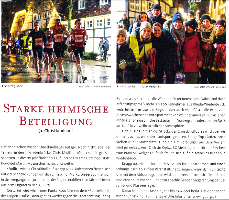 Dank der wunbaren Bilder von Ralph Schmidt haben es die Spitzengruppe 2022 und einige Helfer des Christkindllaufes in die aktuelle Ausgabe vom heimischen "STADTGESPRÄCH" geschafft............