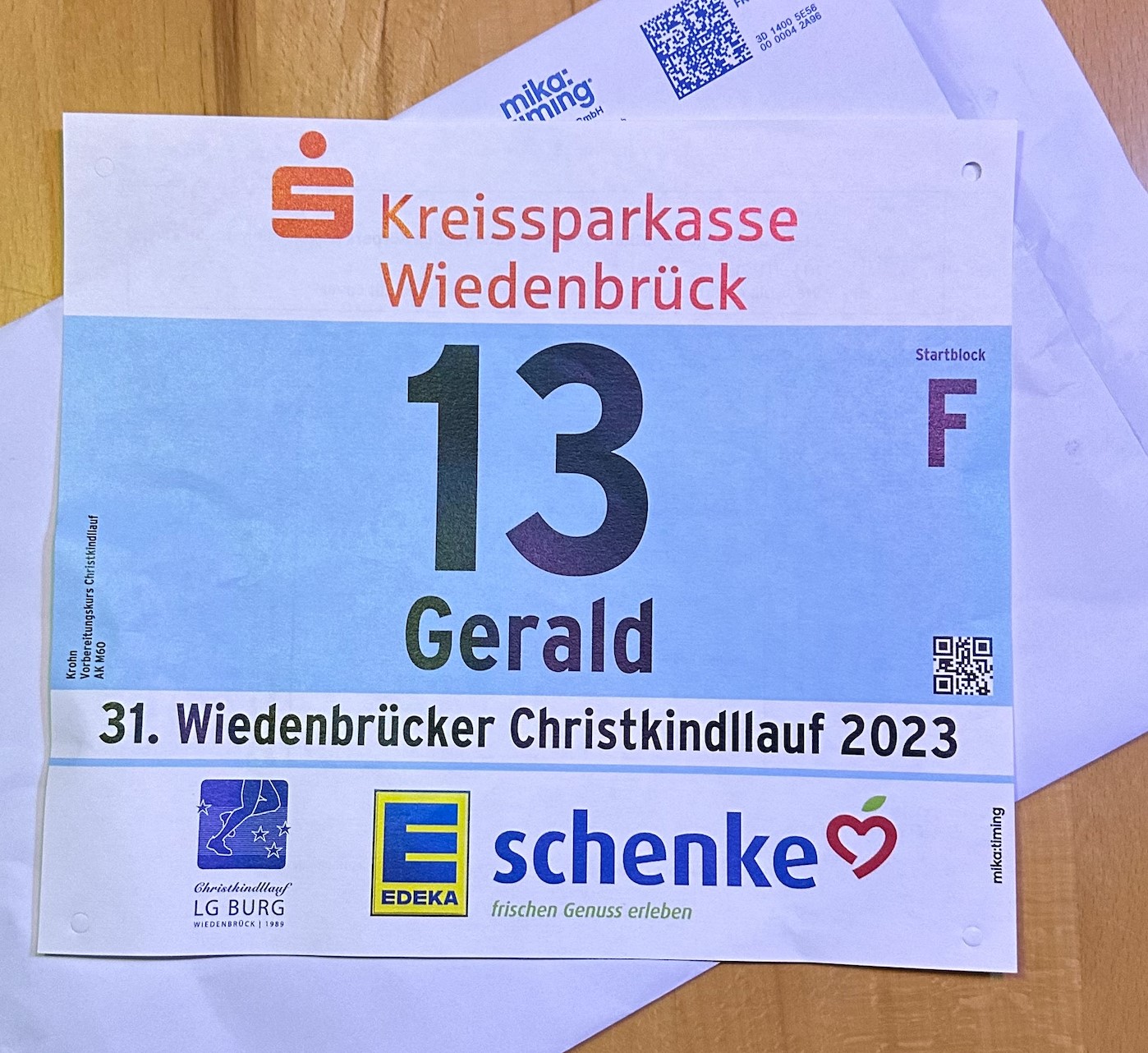 Start-Nummern können am Freitag ab 16:00 Uhr im Stadthaus abgeholt werden. Immerhin knapp die Hälfte der Teilnehmer nutzte den Service des Postversand. So freute sich zum Beispiel Gerald: “ Was mir gefällt: dass ich zum 31. Christkindl Lauf mit der Startnummer 13 starten werde...” Viel Spaß auf der Strecke, Gerald!