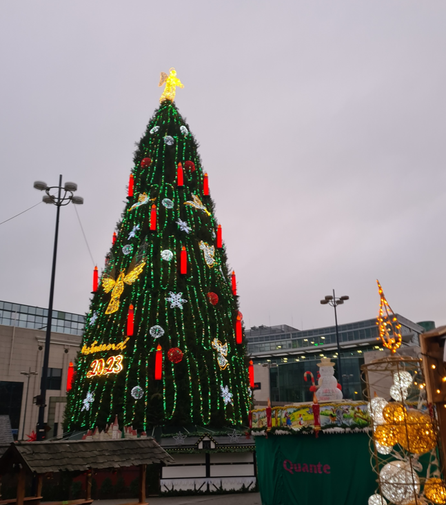 Dieses Jahr fand das WDR2 Weihnachtswunder in Düsseldorf statt und ich wollte mich unbedingt daran beteiligen. Nach Düsseldorf zu laufen, erschien mir zu weit. Deswegen die Idee von Dortmund, dem WDR2 Weihnachtswunder 2022, nach Düsseldorf zu laufen. Laut Navigation sind das 68km. Im Gepäck hatte ich einen Teil der Spenden von meinem 60. Geburtstag. In meinem Whatsapp Status konnte man den Lauf verfolgen und wer noch etwas spenden wollte, konnte mir einfach schreiben. Los ging es mit dem Zug nach Dortmund, leider mit einer Stunde Verspätung. Zuerst ging es zum Hansaplatz mit dem Riesenweihnachtsbaum.