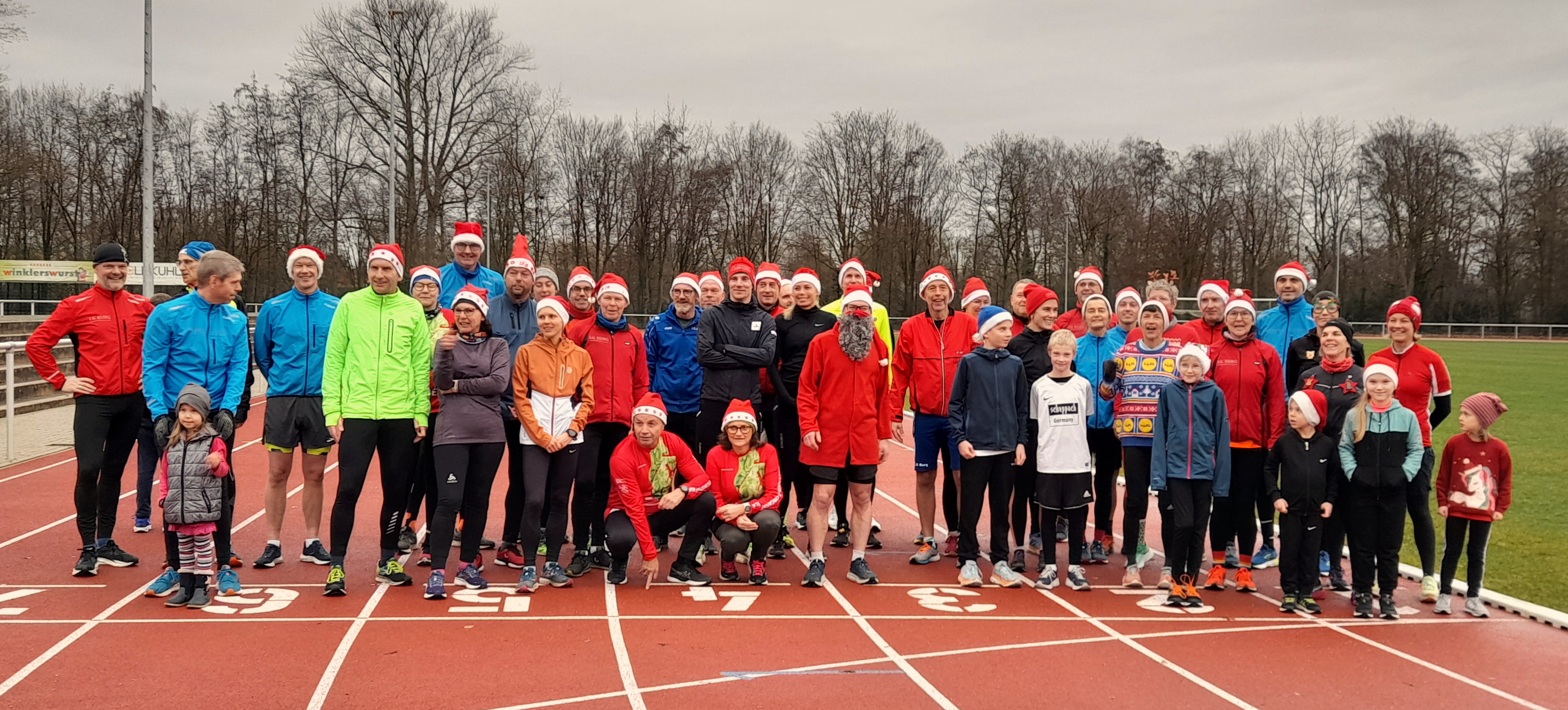 Direkt nach den Feiertagen hat die LG BURG den Weihnachtsmützenlauf , der aufgrund des Sturms letzten Donnerstag ausfallen musste, nachgeholt. Ca. 50 Läuferinnen und Läufer ab 5 Jahren machten sich mit roten Mützen auf den Weg zum lockeren Lauf. Viel Freude und Staunen unterwegs war die erwünschte Resonanz auf diesen roten Läuferpulk.