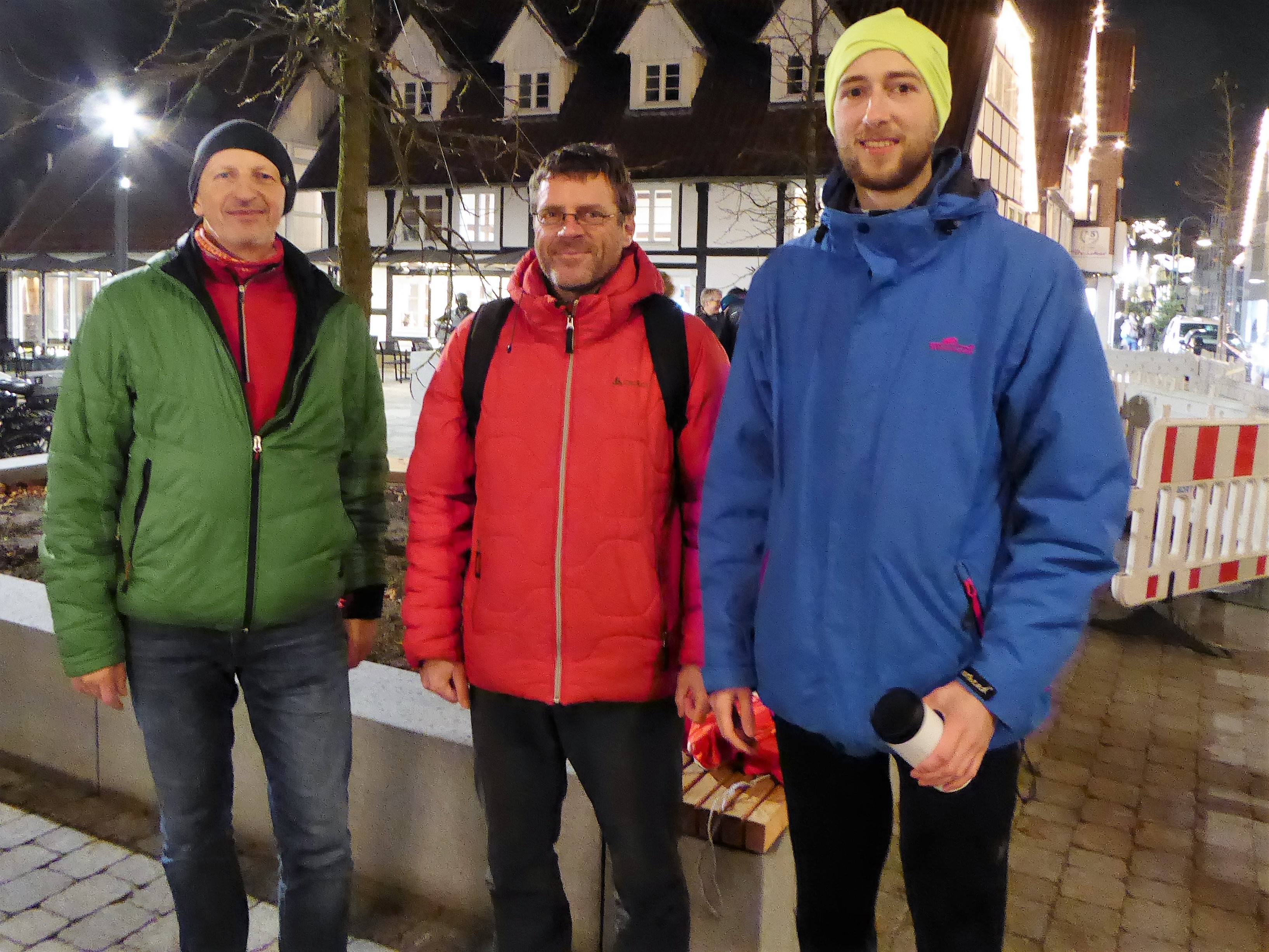 der Streckenchef der LG Burg Dietmar Sander, Jörg Voigt Trainer beim Niedersächsischen Leichtathletikverband und Christkindl-Sieger Karsten Meier aus Braunschweig.