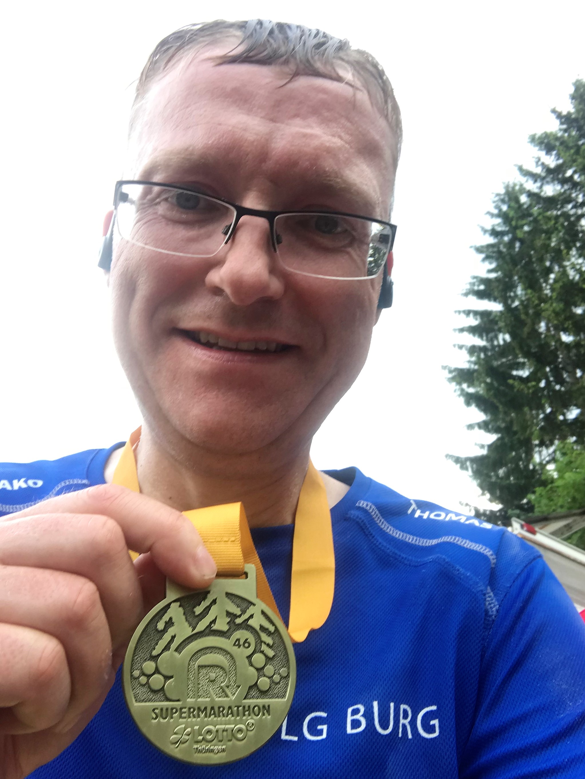 Um 6 Uhr in der Früh gingen am 26. Mai knapp 2000 Teilnehmer in Eisenach auf die Strecke über 73,9 Km. Einer von ihnen war LG Burg-Mitglied Thomas Reckmann. Temperaturen über 20 Grad und strahlender Sonnenschein machten den Crosslauf 2018 zu einer schweißtreibenden Angelegenheit. Aus Schmiedefeld am Rennsteig sendete er dann Grüße nach Westfalen: „Es heißt hier es wäre das „schönste Ziel der Welt“!? Um dieses zu erreichen war ein ganzes Stück Arbeit notwendig, besonders weil es diesmal  ungewöhnlich warm für diesen Lauf .. war. .Ich bin hier verrückterweise den Supermarathon gelaufen, der in diesem Jahr offiziell 73,9 km lang und mit 1867 Höhenmetern ausgeschrieben war.Das Ziel habe ich überglücklich in 9:57:43 erreicht.Sobald es geht komme ich wieder zum Lauftreff, aber immer schön langsam!  Gruß  Thomas“