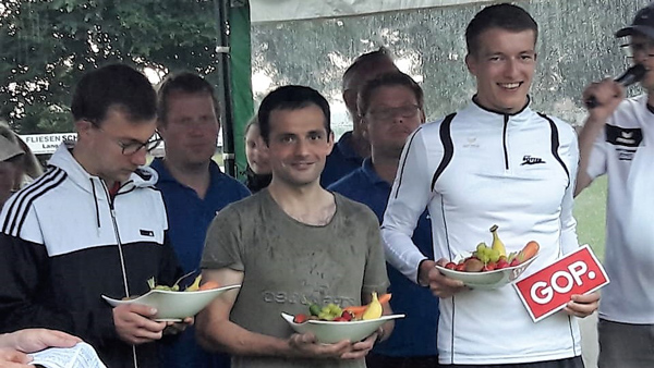 Für den verspäteten (Pfingstlauf)-Lauf in Langeneicke am 01.Juni hatten sich Dietmar Sander, Elmar Klemp und Martin Masjosthusmann entschieden. Hier liefen  zwei weitere LG Burg Herren in die Top 10. Gregor Glomm belegte Platz 9 und Murat Bozduman wurde bei der Siegerehrung als Gesamt.-2 mit einer Schale Obst belohnt.