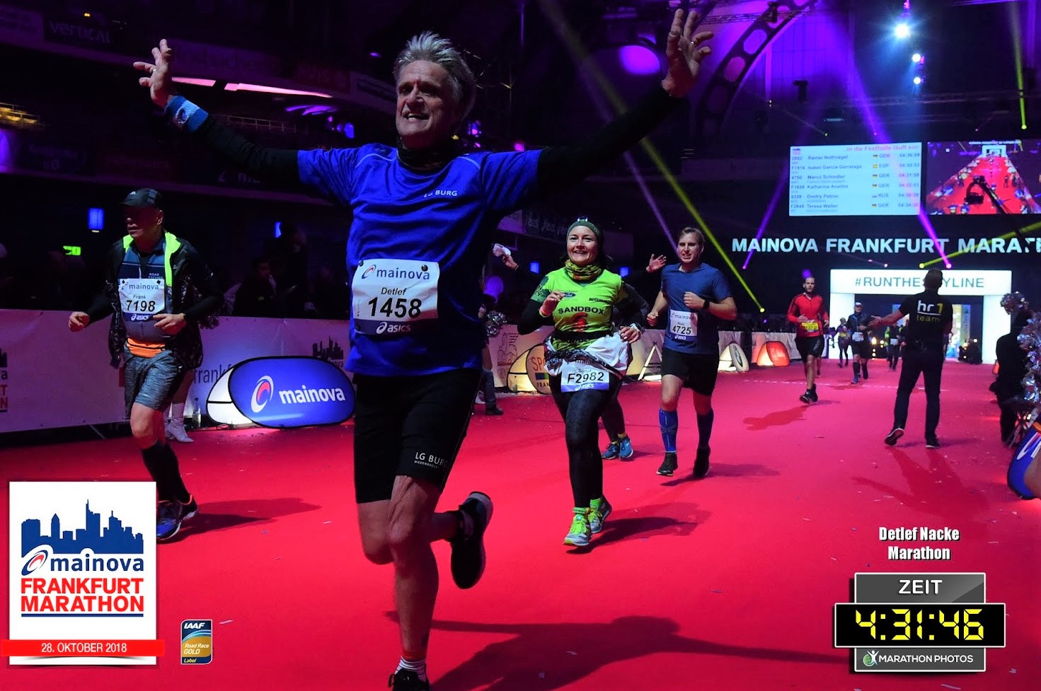 Seinen ersten Marathon lief Detlef Nacke. Bis Kilometer 20 und einer Zwischenzeit von 1.53 lief alles nach Plan….. doch dann wurde es schwer. Er erreichte das Ziel in einer Zeit von 4:31 Minuten.