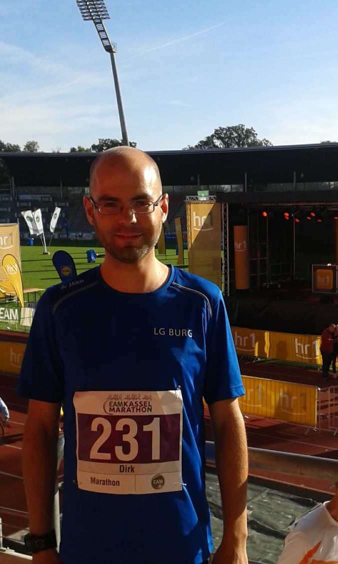 Am Sonntag lief Dirk Hansmeier  nach 2:59:41 Std als Gesamt 19 des Kassel-Marathons ins Ziel im Auestadion. "Es hat riesig Spaß gemacht, tolle Stimmung an der Strecke und im Stadion", freute er sich. „Mit der angepeilten Zeit hat's zwar nicht geklappt, aber dann doch immerhin noch knapp unter 3 Stunden 😃“ Damit ist Dirk Hansmeier aktuell einer der wenigen heimischen Läufer, die im Jahr 2019 einen Marathon innerhalb der 3.-Stunden-Marke lief.