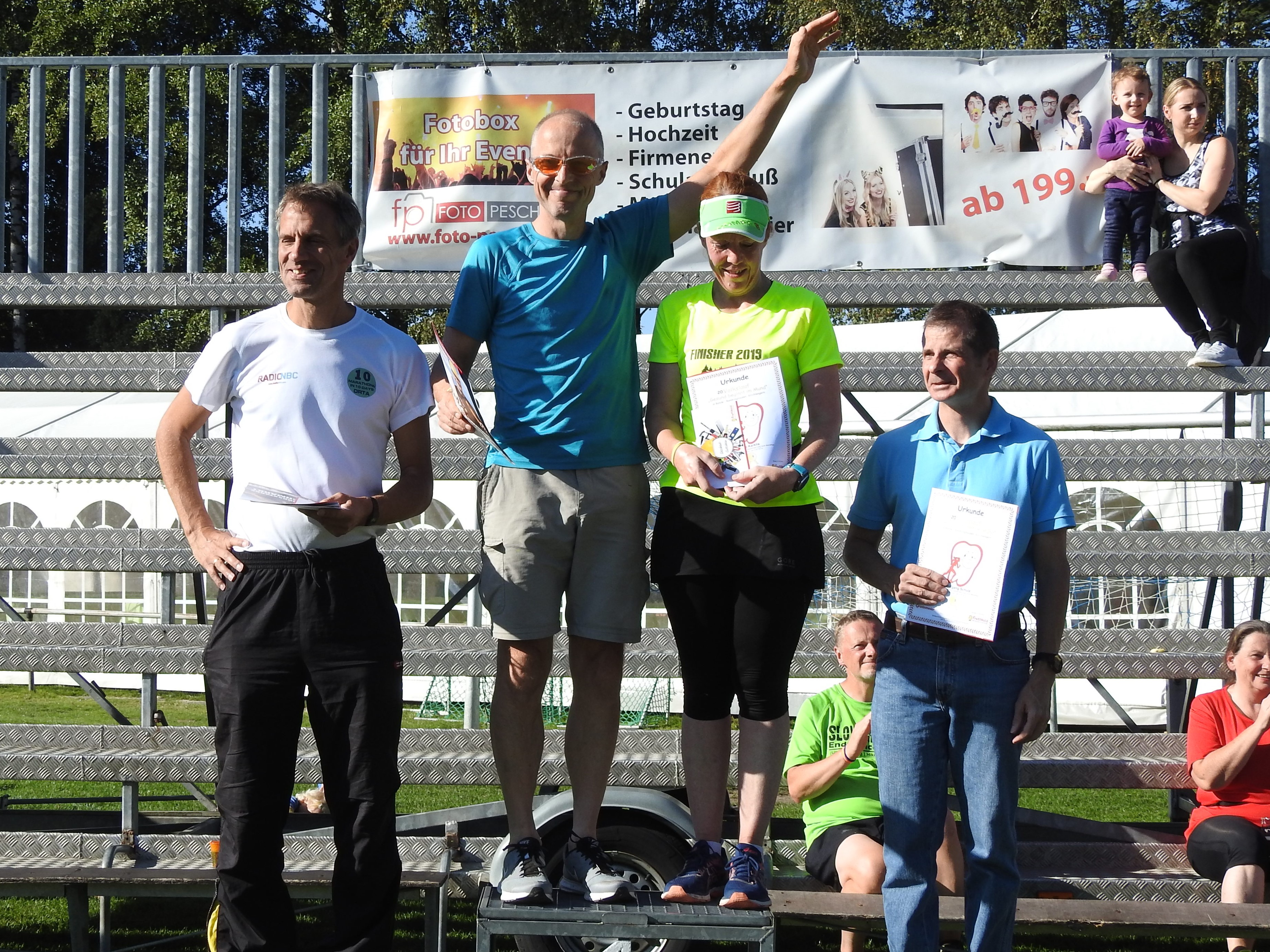 „Wie angekündigt habe ich den Marathon beim VfL Klosterbauerschaft gelaufen. Bei strahlendem Sonnenschein auf einer mir sehr entgegenkommenden welligen Strecke mit 608 Höhenmeter. Für mich und auch für LG Burg habe ich den Gesamtsieg eingelaufen. Mit 3:42:27 Std. bin ich überraschend gut durchgekommen. Der Zweite, Jobst von Palombini, brauchte 3:57 Std. Bei der Siegerehrung kam gerade die erste Frau ins Ziel. Die durfte gleich mit auf's Treppchen.“